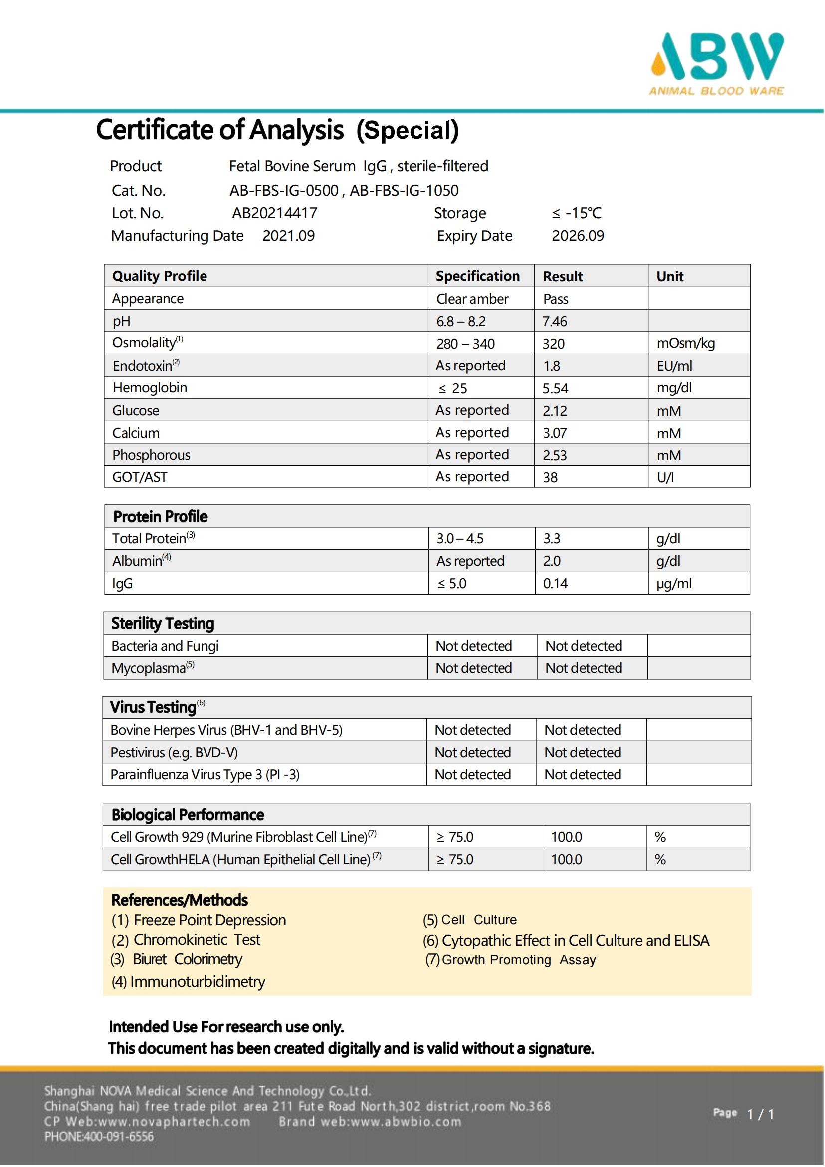 上海諾娃醫藥成立于2017年1月,是一家專業從事于生產、銷售細胞培養產品干細胞及干細胞專用無血清培養基等產品的創新型科技公司。 公司產品主要包括:胎牛血清,細胞庫,干細胞,臍帶間充質干細胞專用無血清培養基,無血清凍存液等眾多細胞培養產品。
