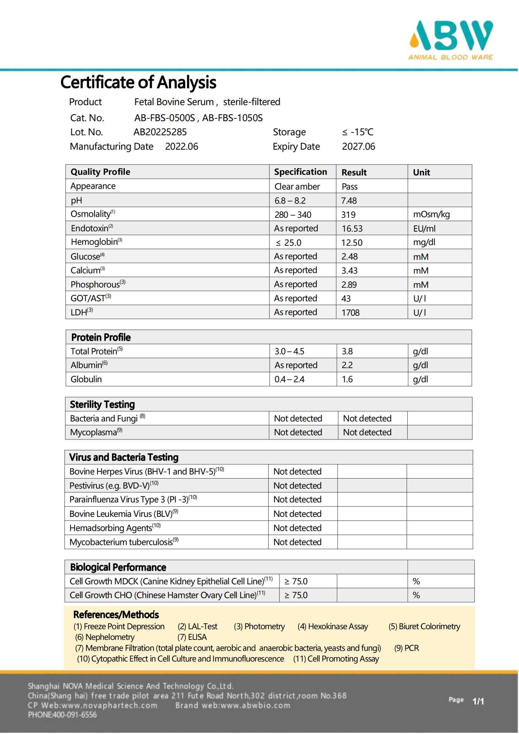 血清 COA