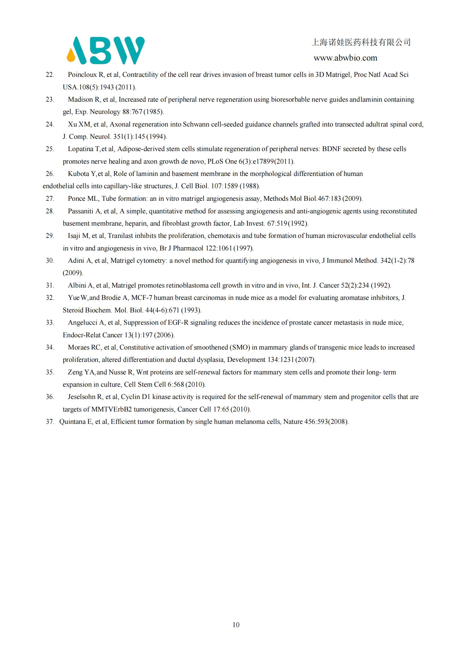 細胞生長,分化,形態(tài)研究,細胞化學功能,細胞遷移/侵襲,細胞基因/蛋白表達。蛋白濃度:8-13mg/mL
