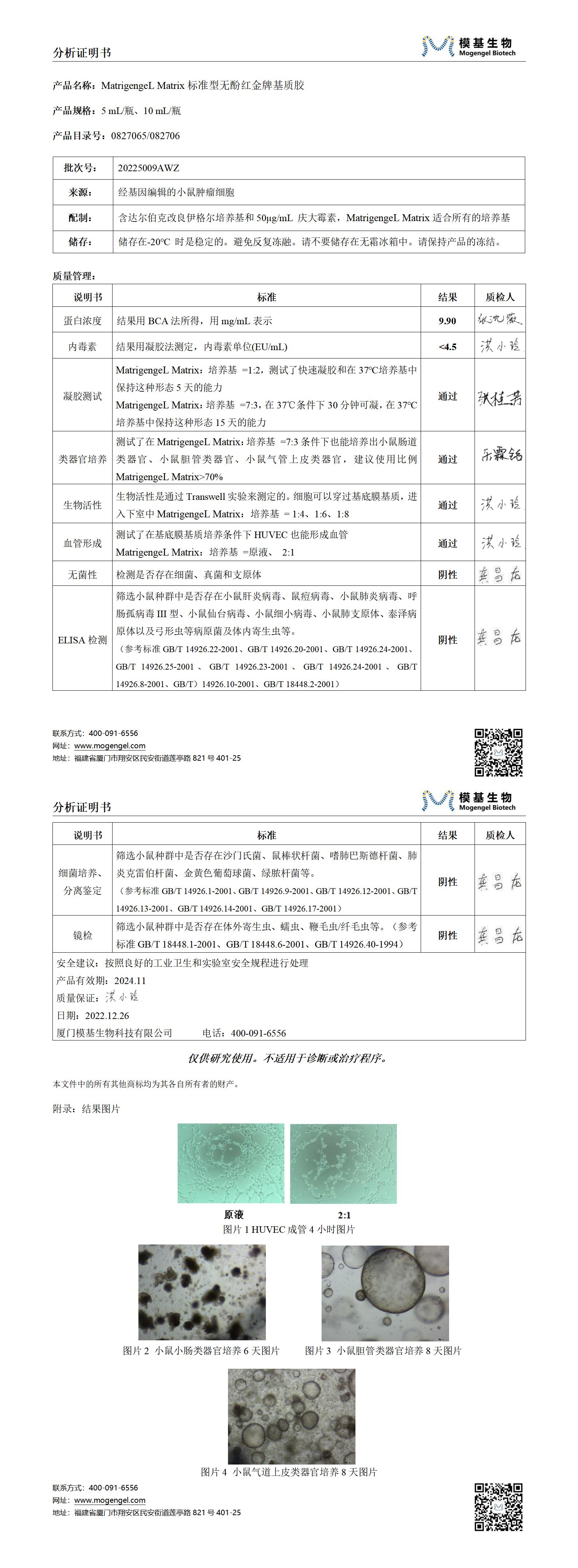 20225009AWZ 分析證明書COA 082706-標準無酚紅基質膠