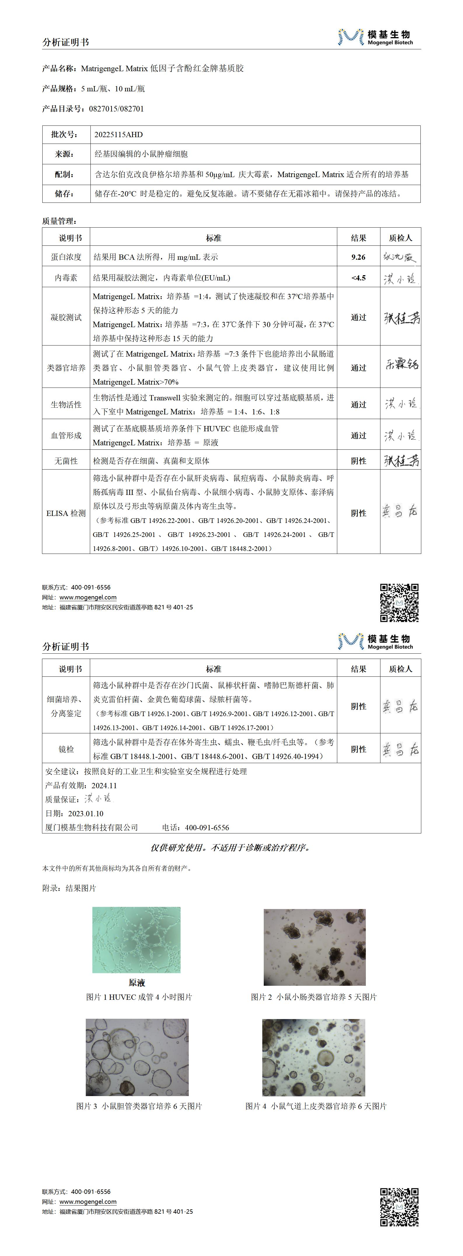 20225115AHD 分析證明書COA 082701-低因子含酚紅基質膠