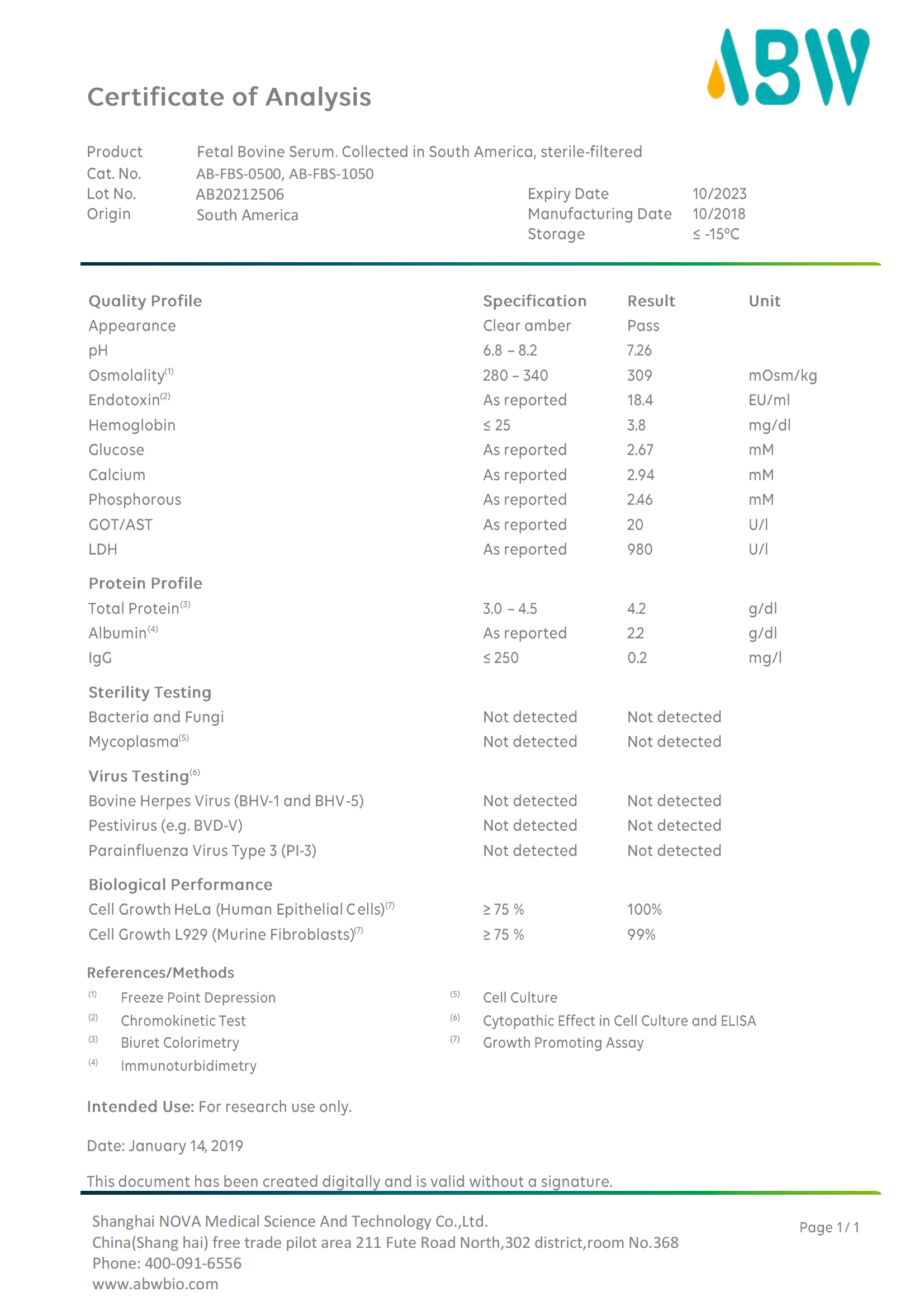 Cat. NO.:AB-FBS-1050