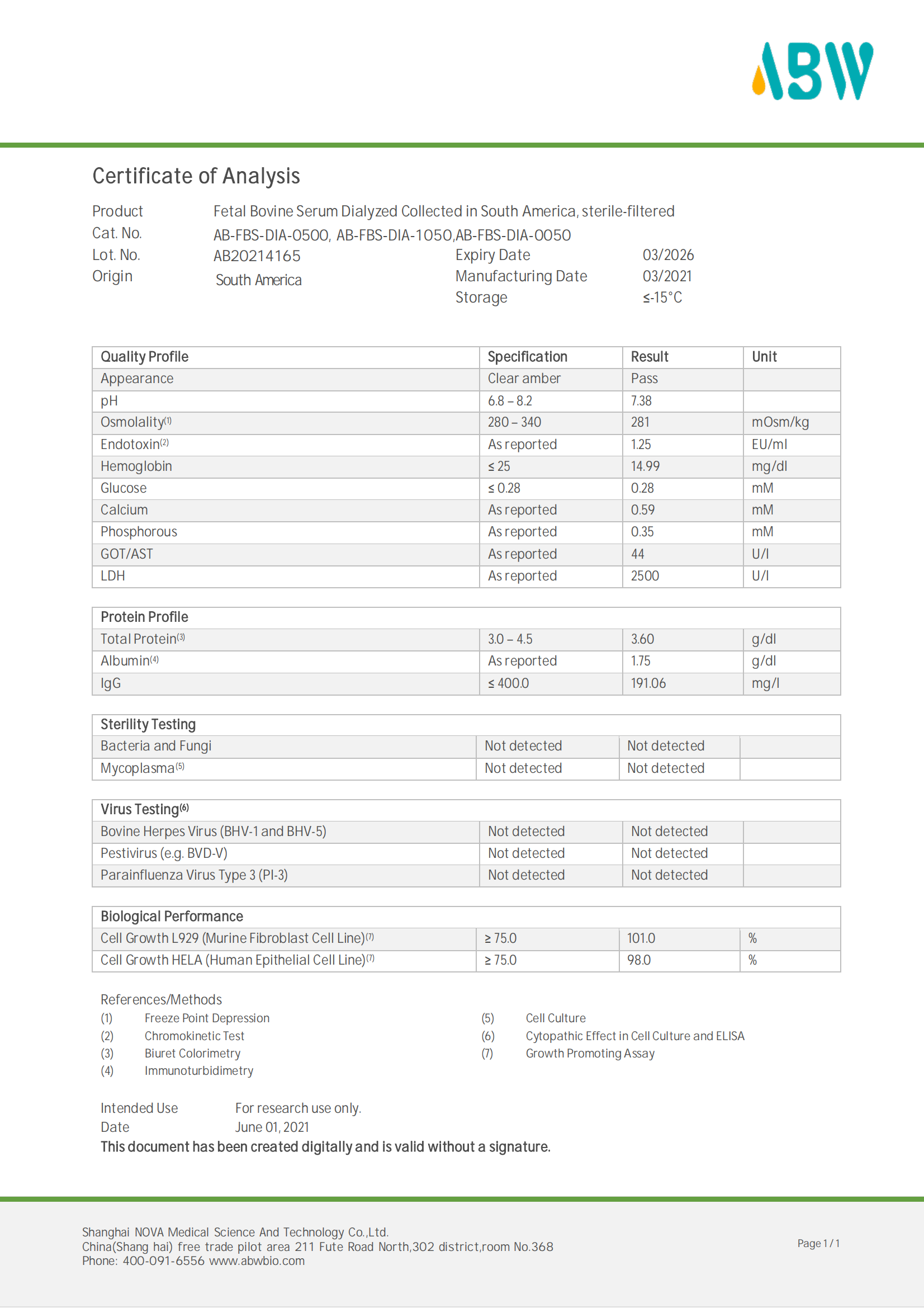 ABW血清產品血源地來自烏拉圭,德國工藝加工,原裝進口產品,批間穩定性高。